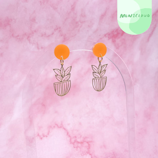 Brass Dangles - Retro Pot Plant
