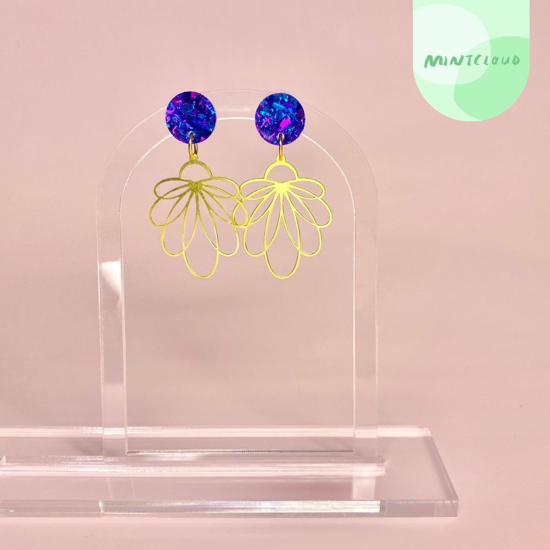 Dance the night away with our Fountain earrings! These show-stopping art deco inspired stunners are the perfect accessory to make you sparkle 'til dawn. With eye-catching blue glitter studs, you'll be filled with fountain's worth of confidence.
