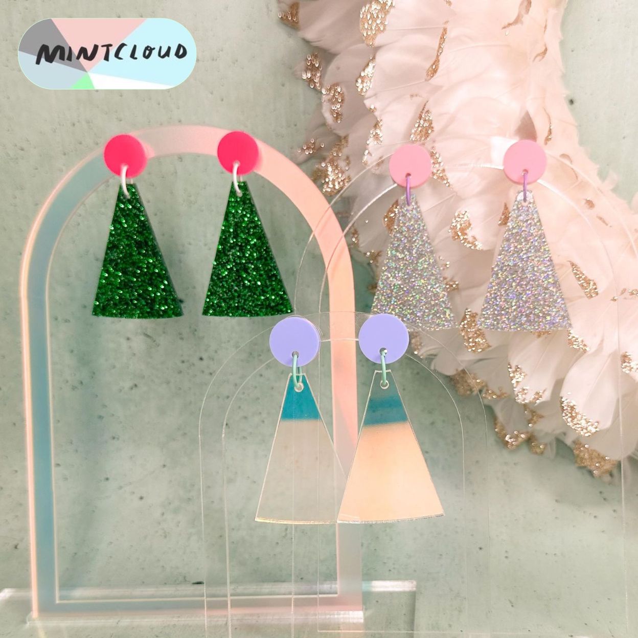 Ready to take your festive fashion to dazzling new heights? Our Mintcloud Christmas Earrings add instant holiday flavour to any outfit! Choose between three glitter styles to give your look an abstract-shaped boost.
