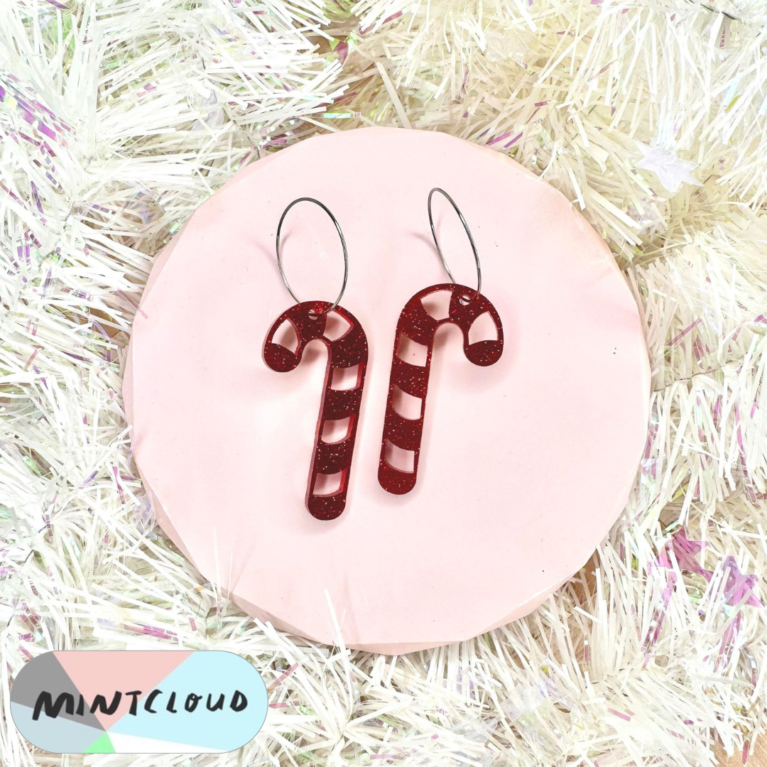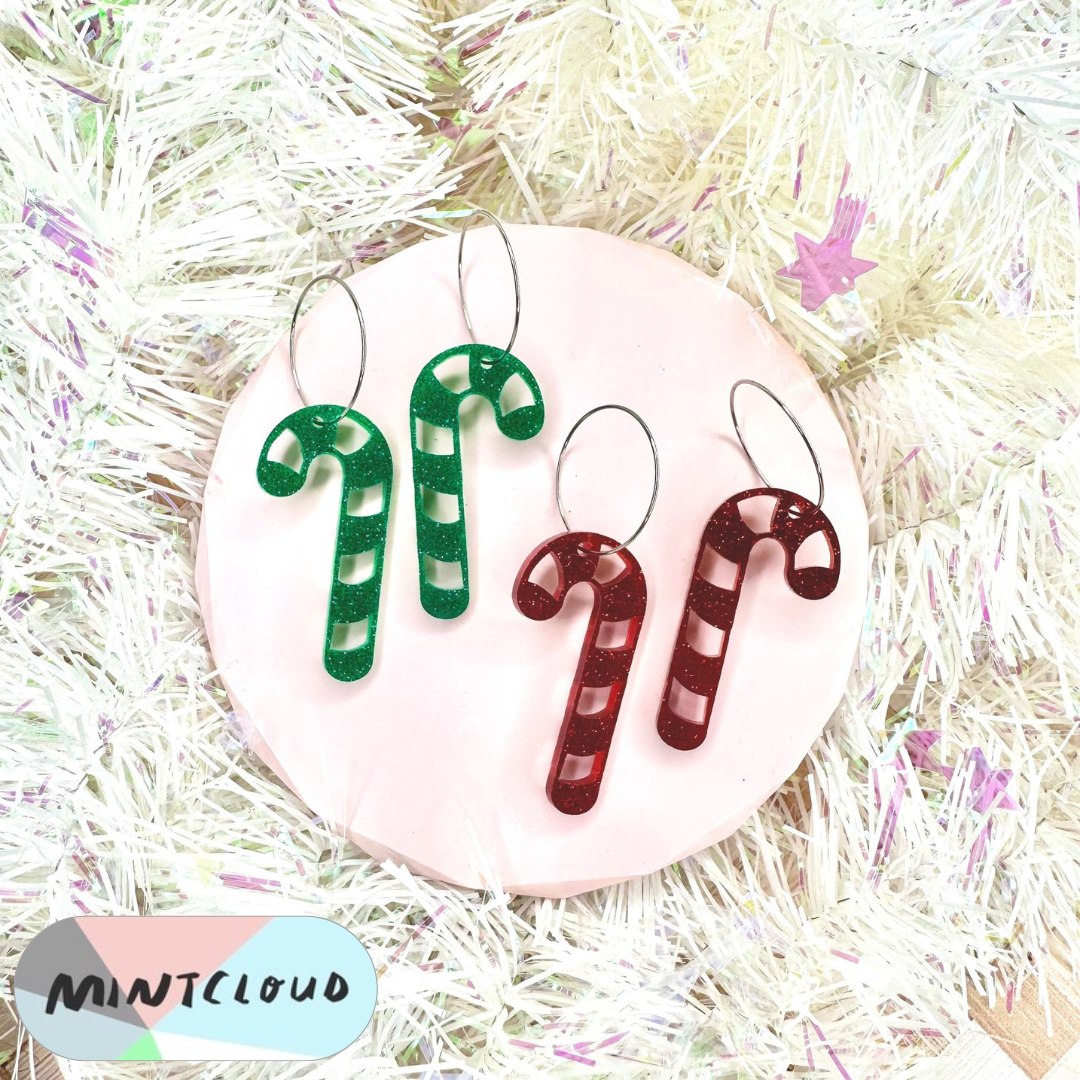 Christmas Earrings - Candy Cane Green or Red Glitter