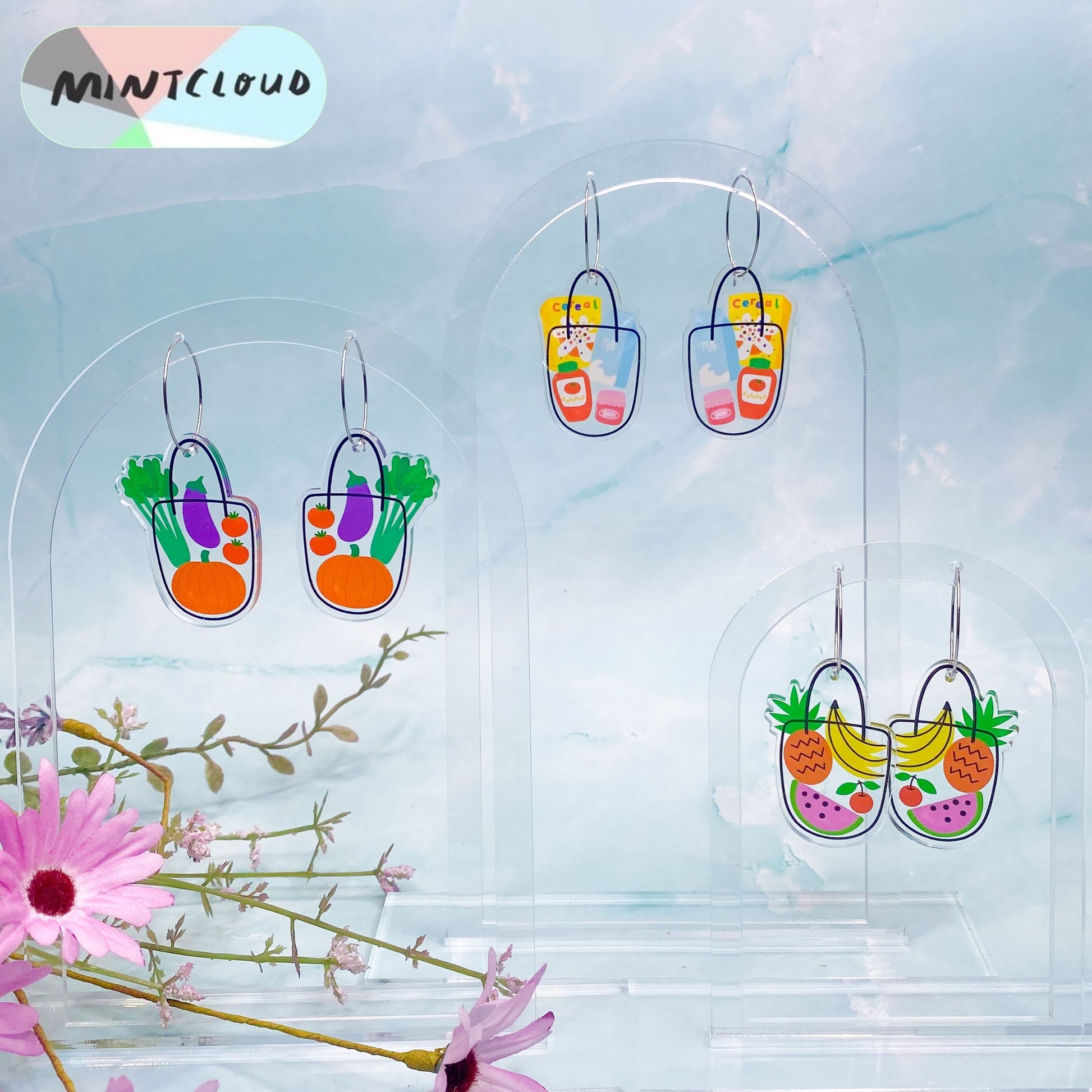 These Mintcloud Dangles will get you ready to hit the farmer's market! Fun earrings featuring sweet fruit and veg in shopping baskets - nothing says "I'm ready to shop" like these!
