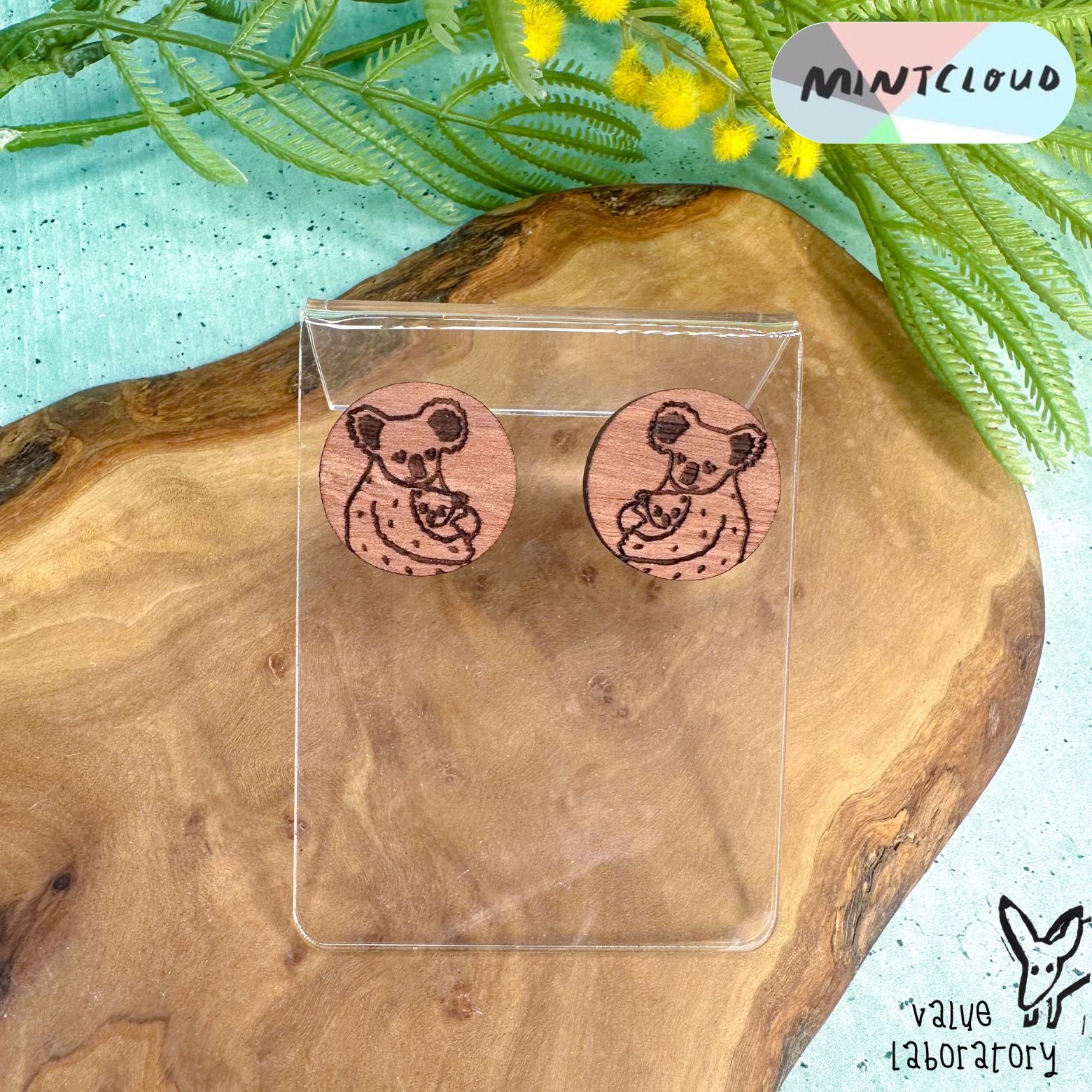 This piece is from the Mintcloud Studio x Value Laboratory collaboration collection. Sarah works mostly with hand carved lino and black ink to create fun and evocative depictions of beloved Australian wildlife. Value Lab focuses on sustainability within production, and minimising waste. We worked together to etch Sarahs original works into Australian bluegum timber, and translate these lino works into wearable earring art!