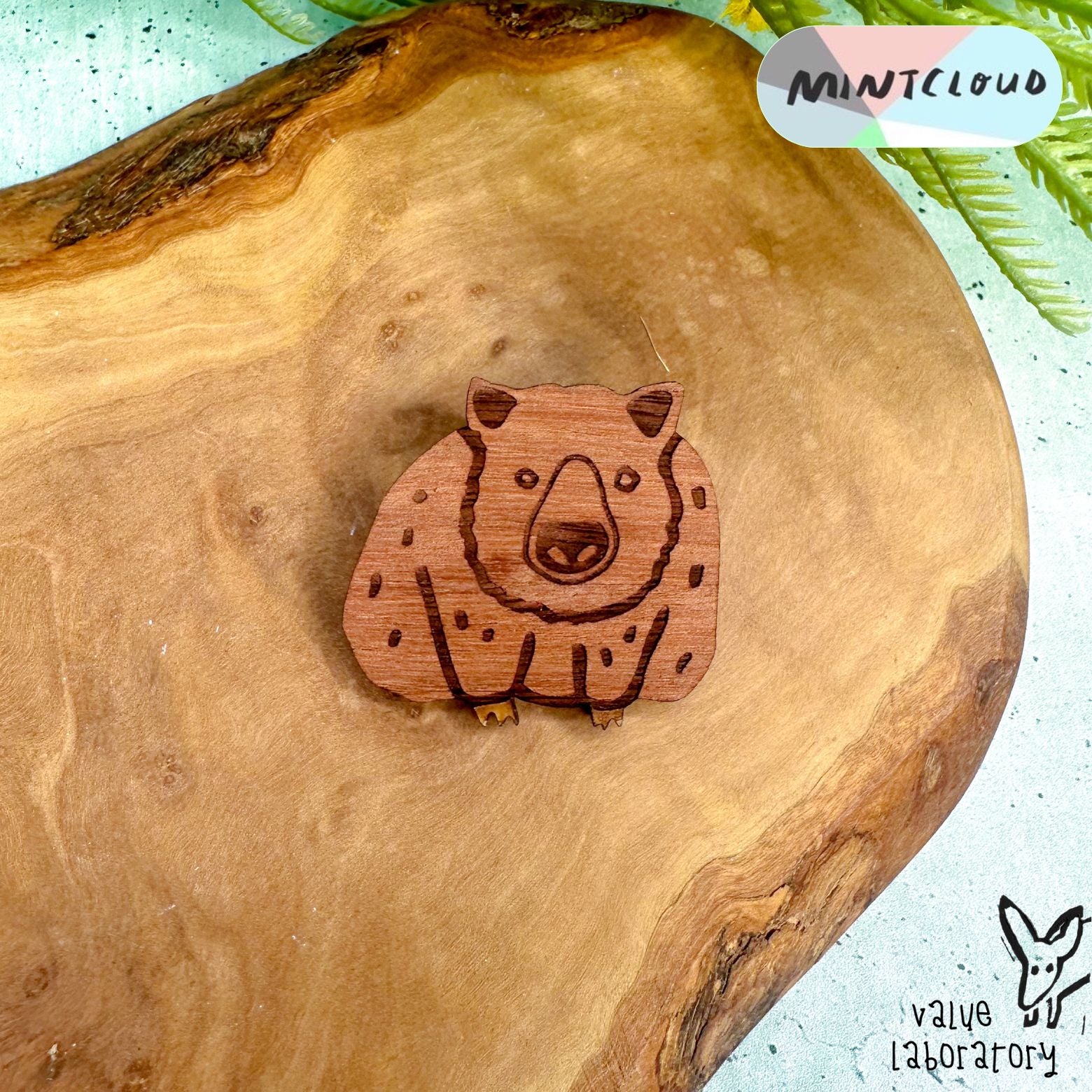 This piece is from the Mintcloud Studio x Value Laboratory collaboration collection. Sarah works mostly with hand carved lino and black ink to create fun and evocative depictions of beloved Australian wildlife. Value Lab focuses on sustainability within production, and minimising waste. We worked together to etch Sarahs original works into Australian bluegum timber, and translate these lino works into wearable earring art!