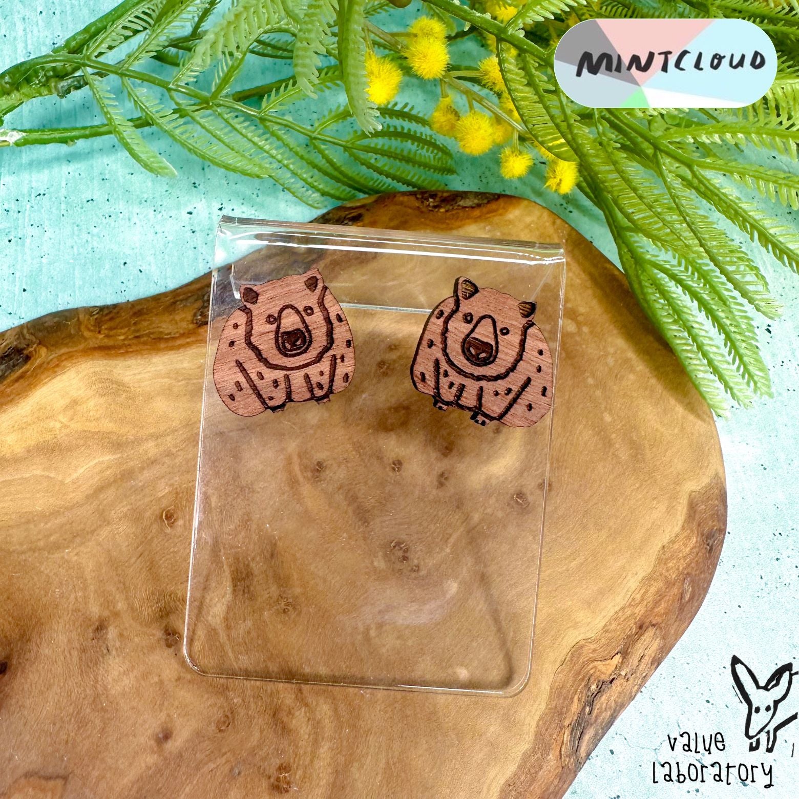 This piece is from the Mintcloud Studio x Value Laboratory collaboration collection. Sarah works mostly with hand carved lino and black ink to create fun and evocative depictions of beloved Australian wildlife. Value Lab focuses on sustainability within production, and minimising waste. We worked together to etch Sarahs original works into Australian bluegum timber, and translate these lino works into wearable earring art!