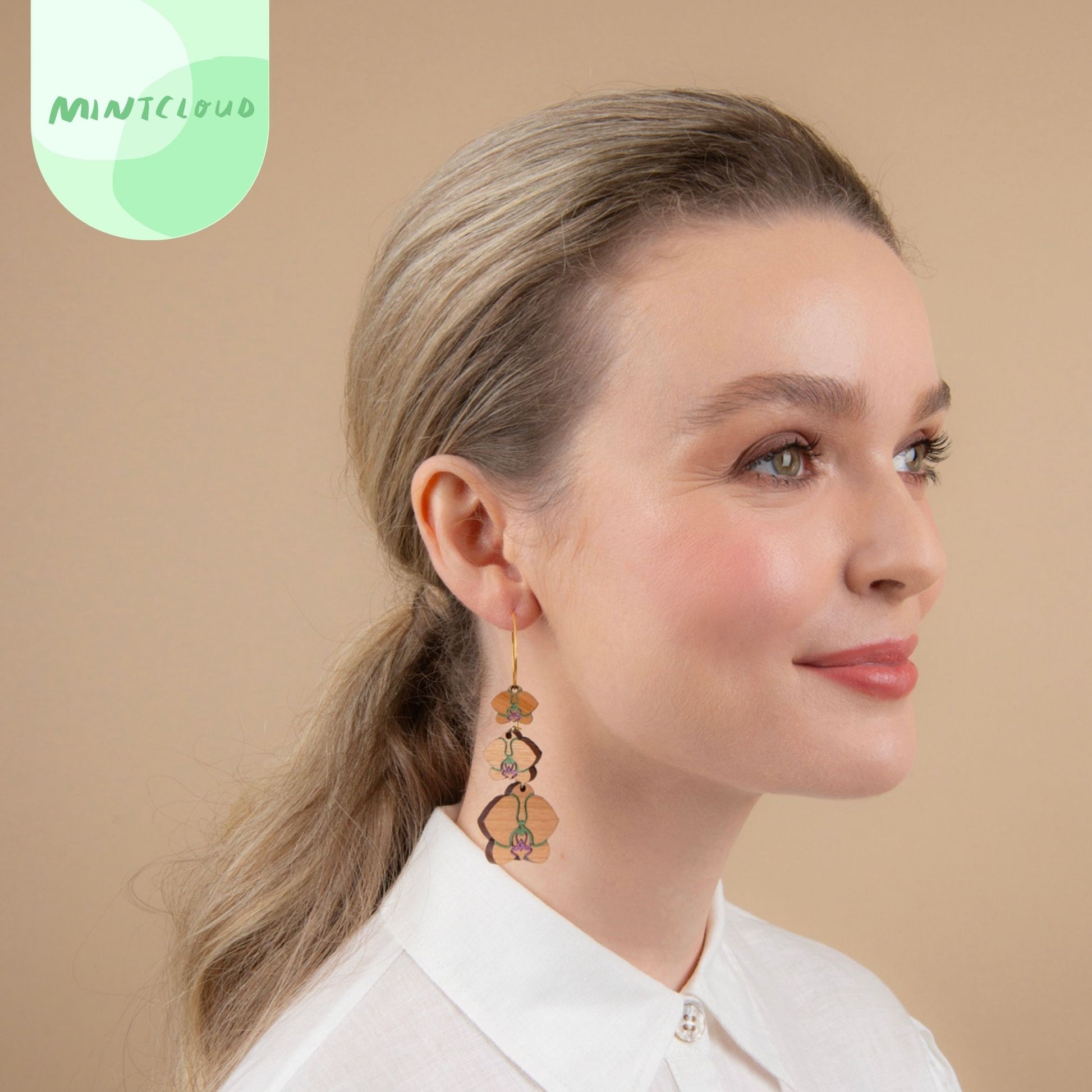 Slip into something more floral with these hand-made, uniquely designed orchid dangles! With three hand painted two-toned pendants that swing independently – these earrings will help you bloom into a style of your own!