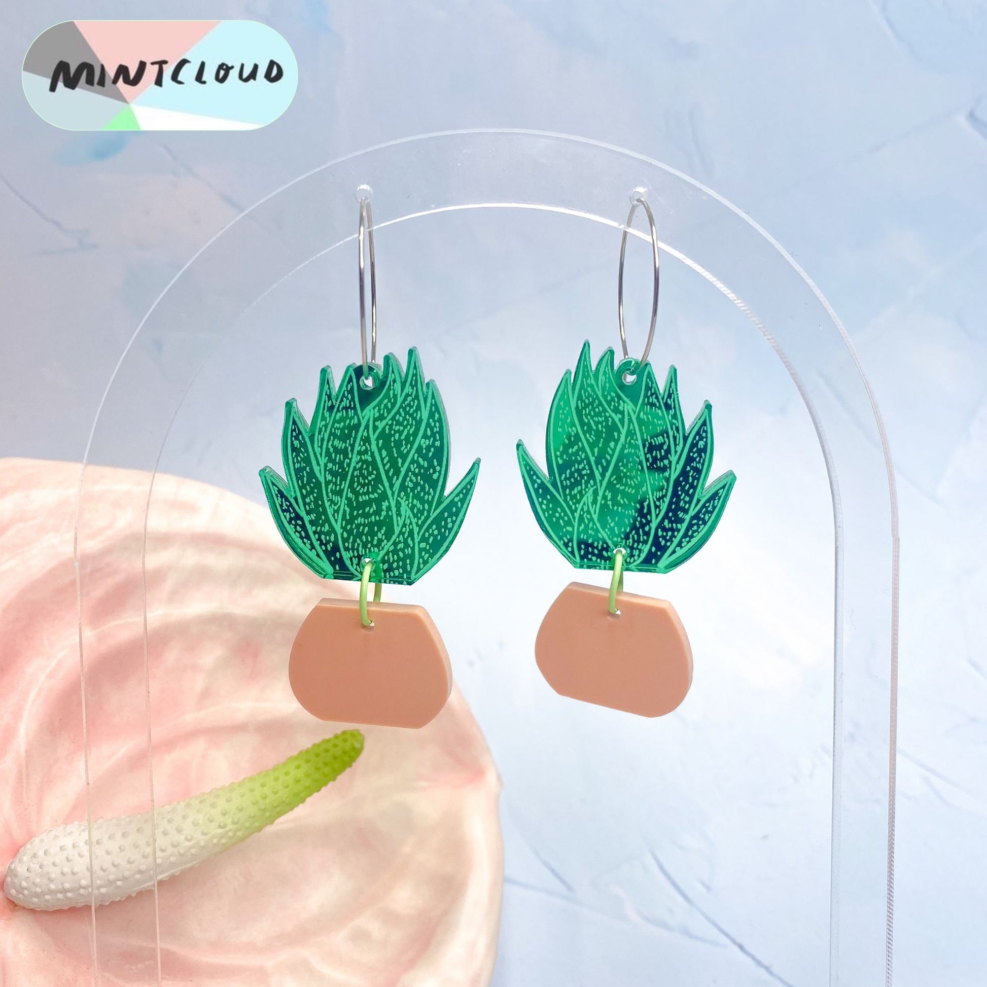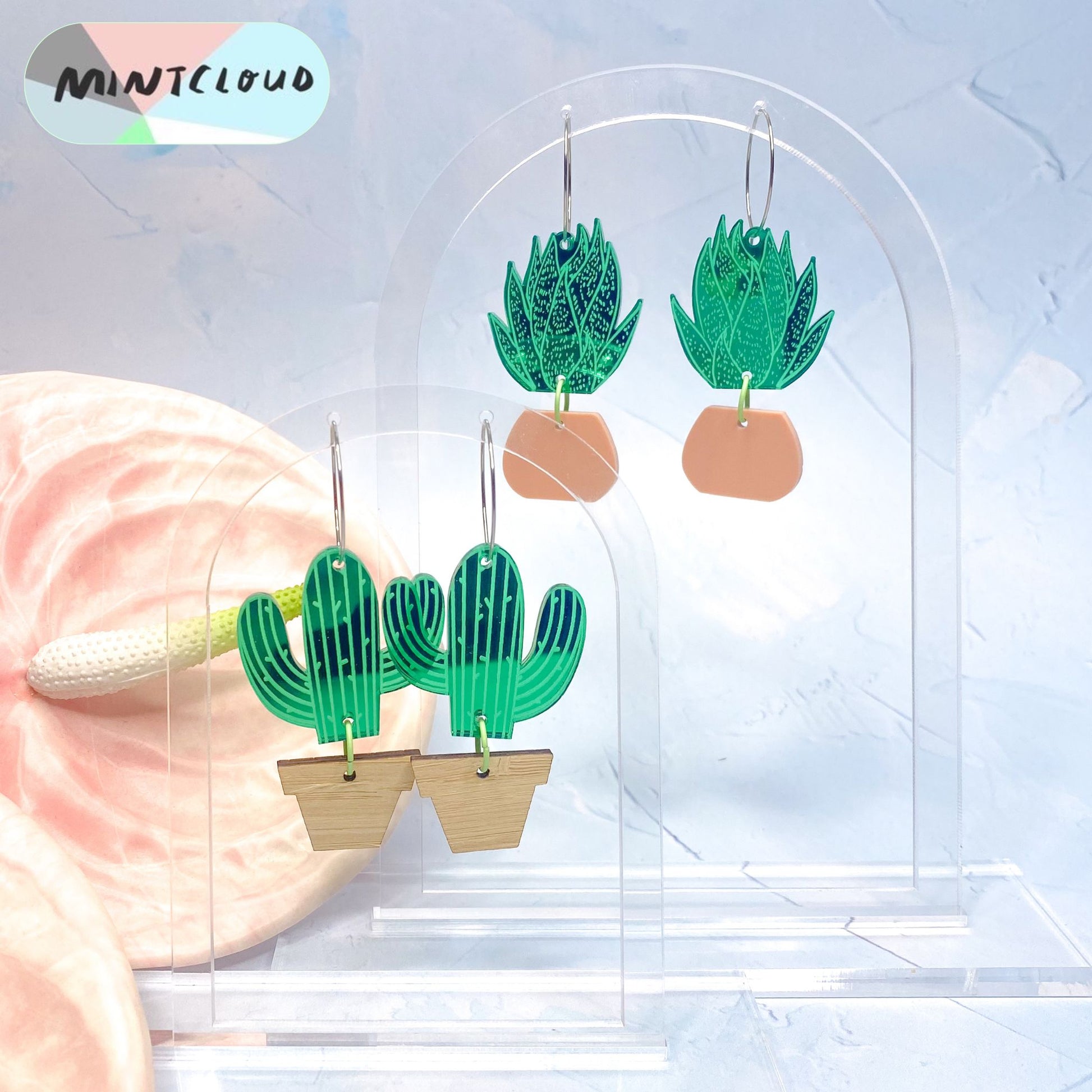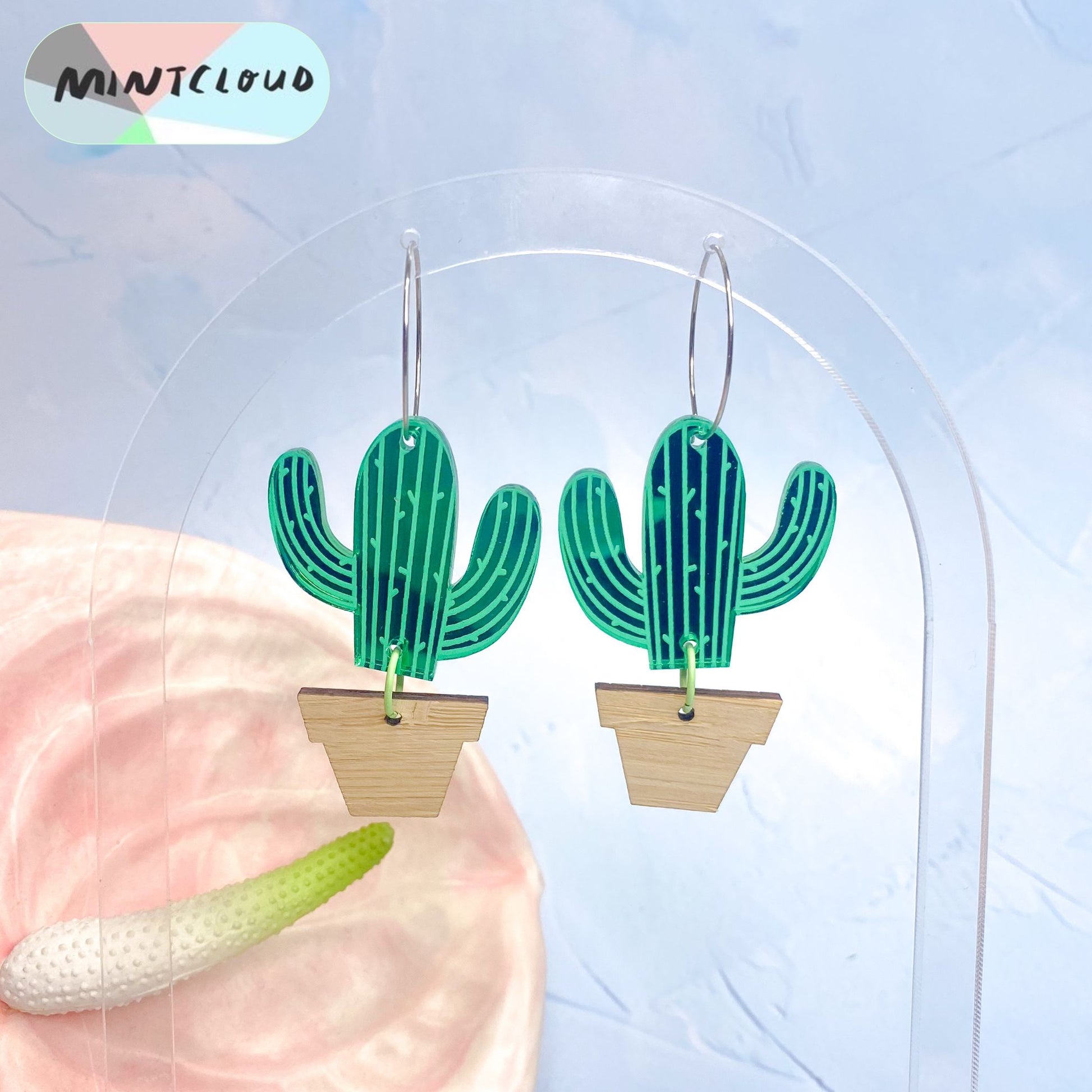 Add a touch of green to your style with these unique dangle earrings. Etched with intricate details, there are two cactus designs to choose from. An eye-catching accessory to set your outfit apart!