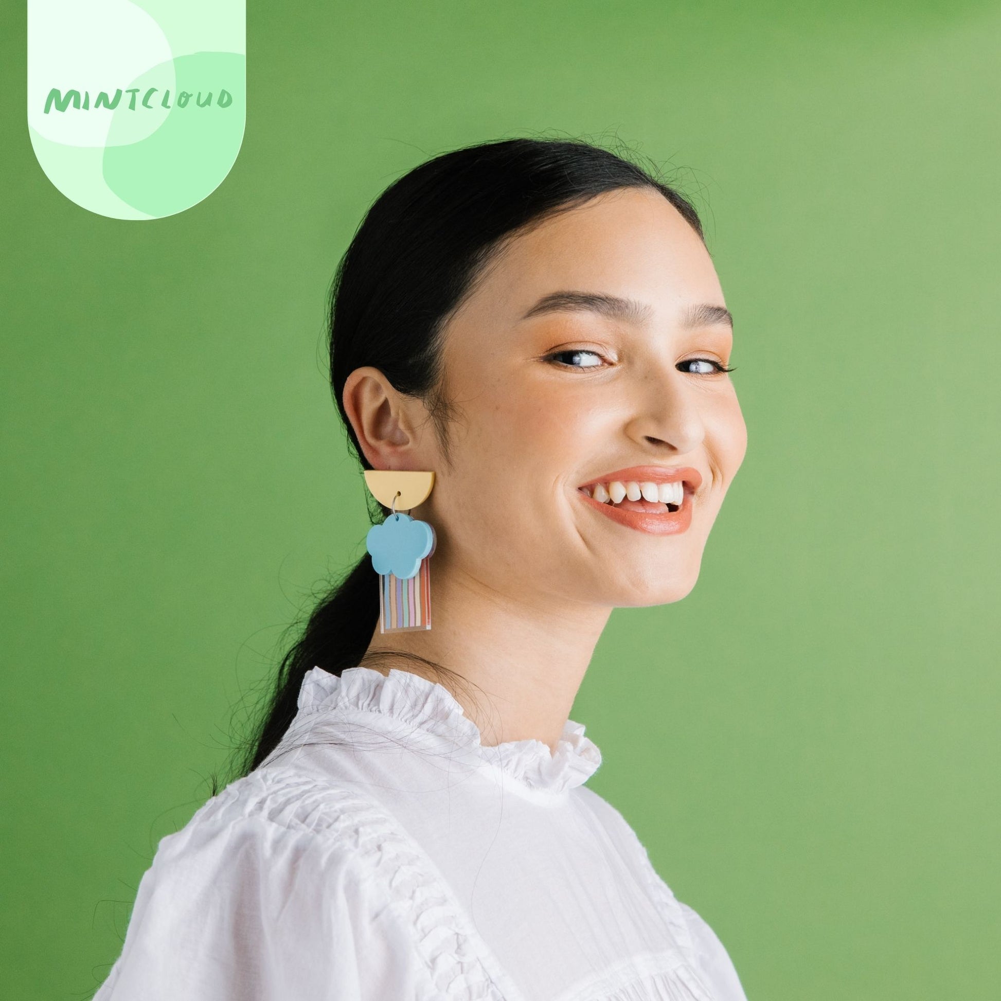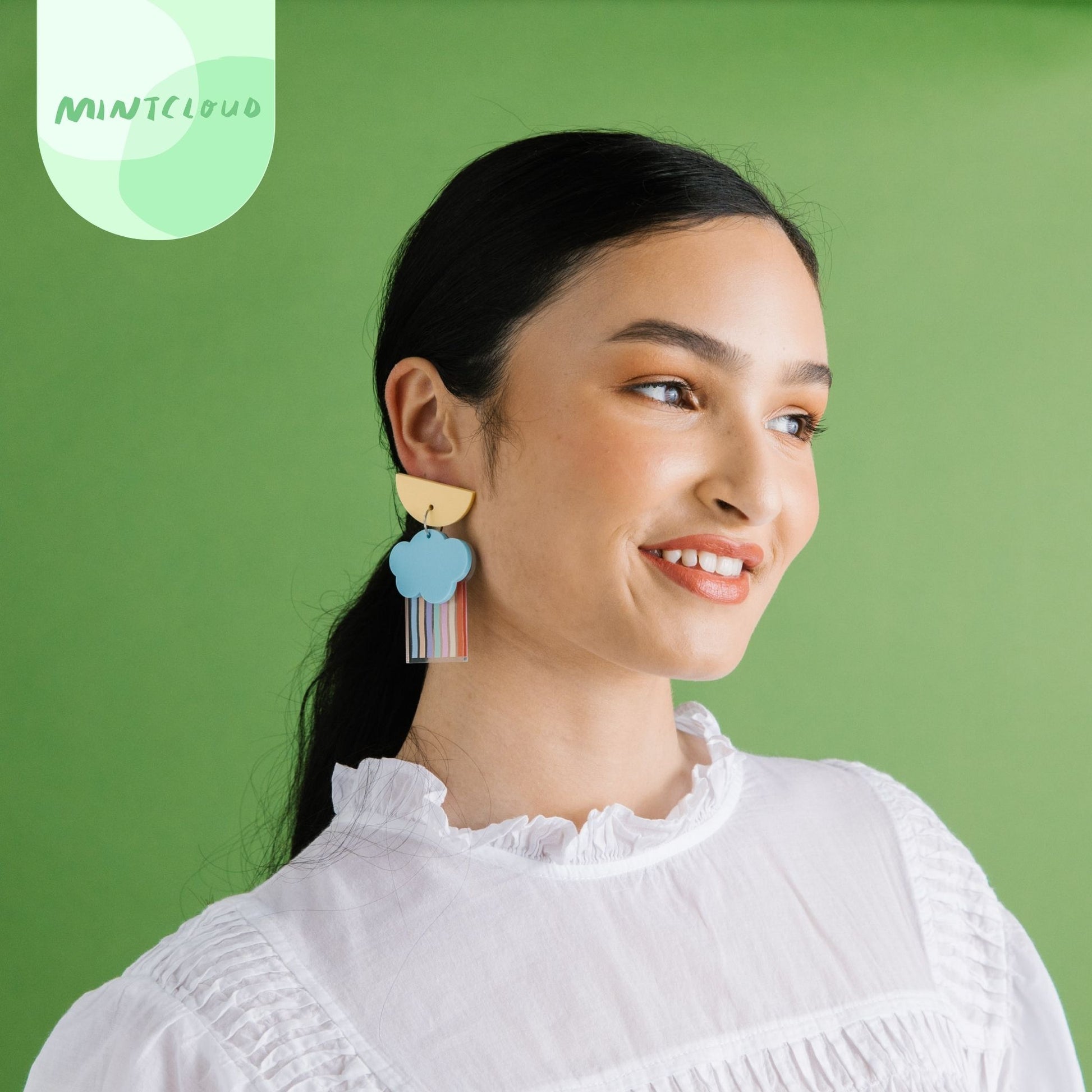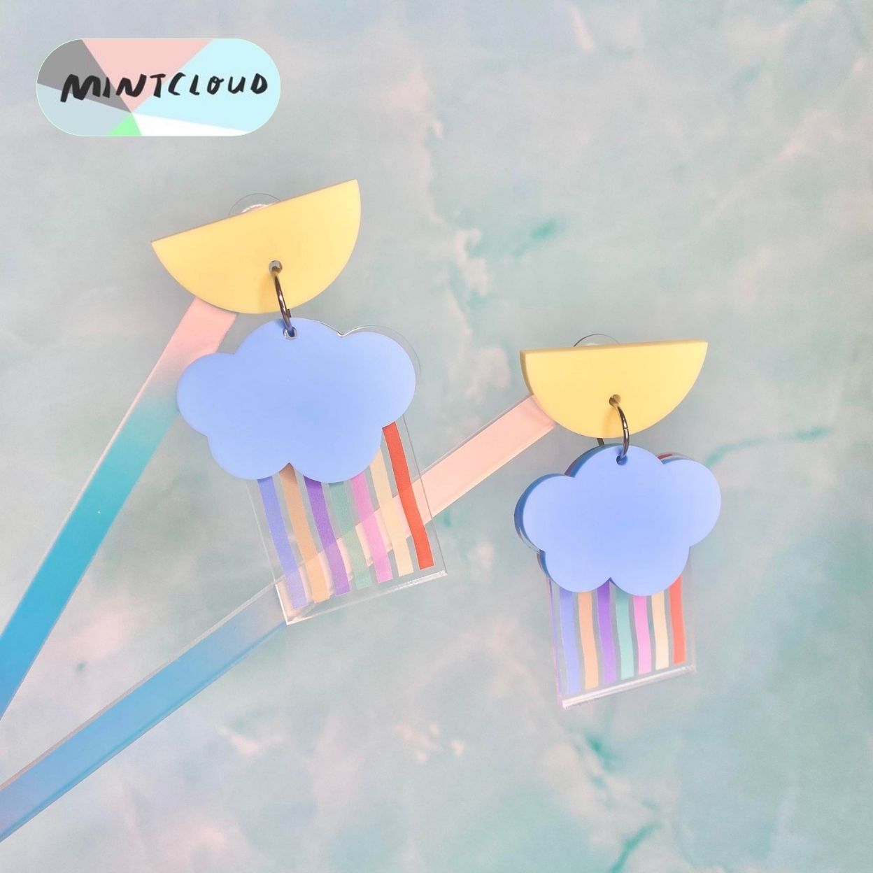 Rain, rain, go away, come again another day! Lasercut in these bright flatbed printed colours that shimmer at every angle, these pieces will compliment your lobes and your outfit.