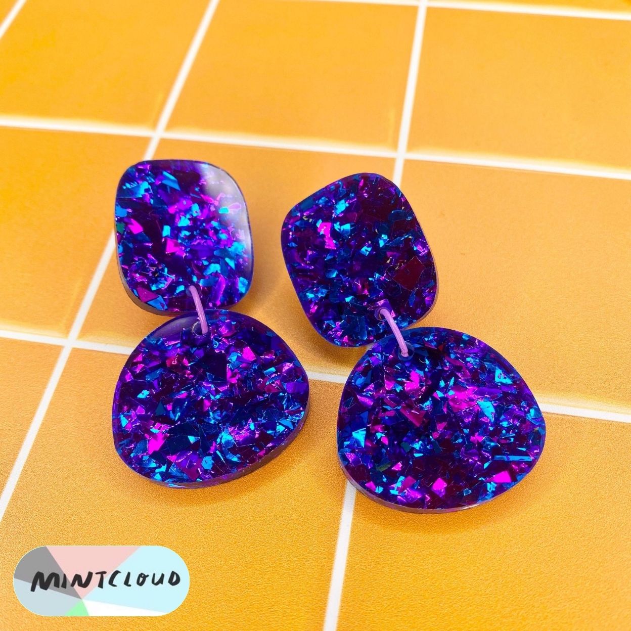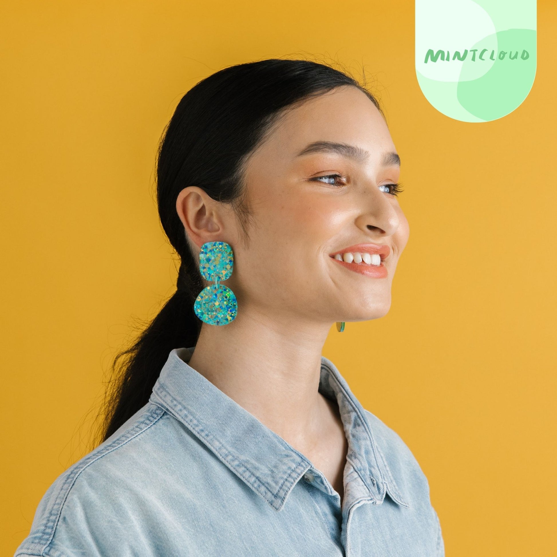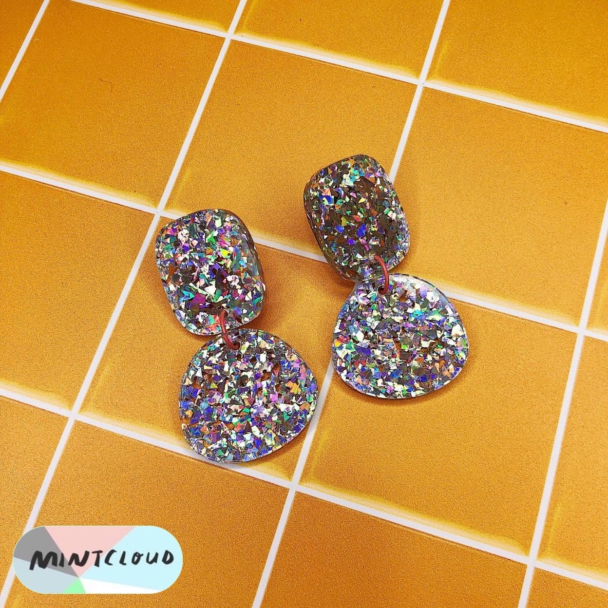 Treat your ears to some serious sparkle with these Rock Drops dangles! Adorned with glitter flakes embedded in big, bold acrylic, these earrings are sure to turn heads. Make a statement with a variety of color options available!
