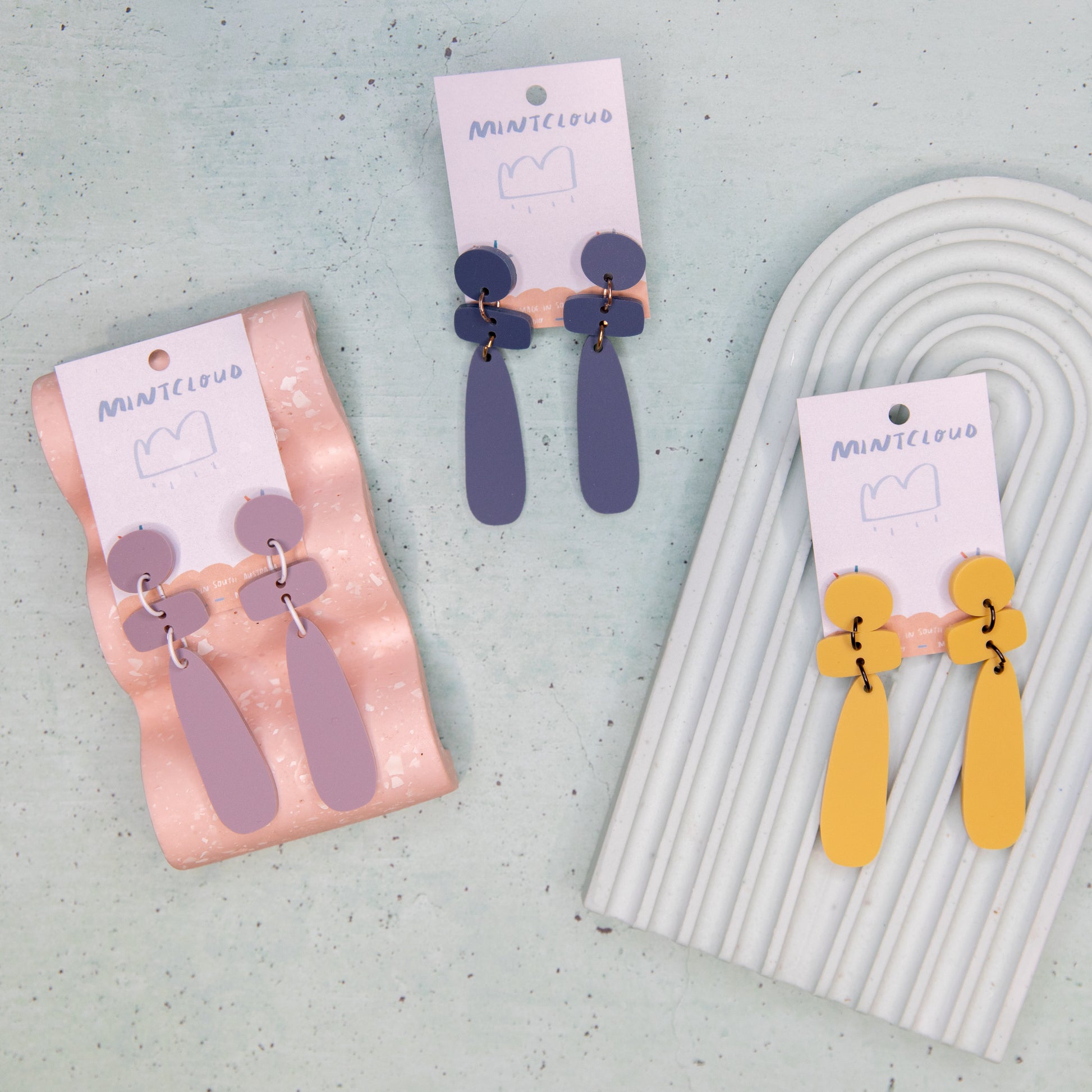 These contemporary Shapes Dangles earrings come in a variety of matte colours, perfect for office wear or after work drinks! With lightweight build, these stylish earrings are the perfect accessory to elevate any look.