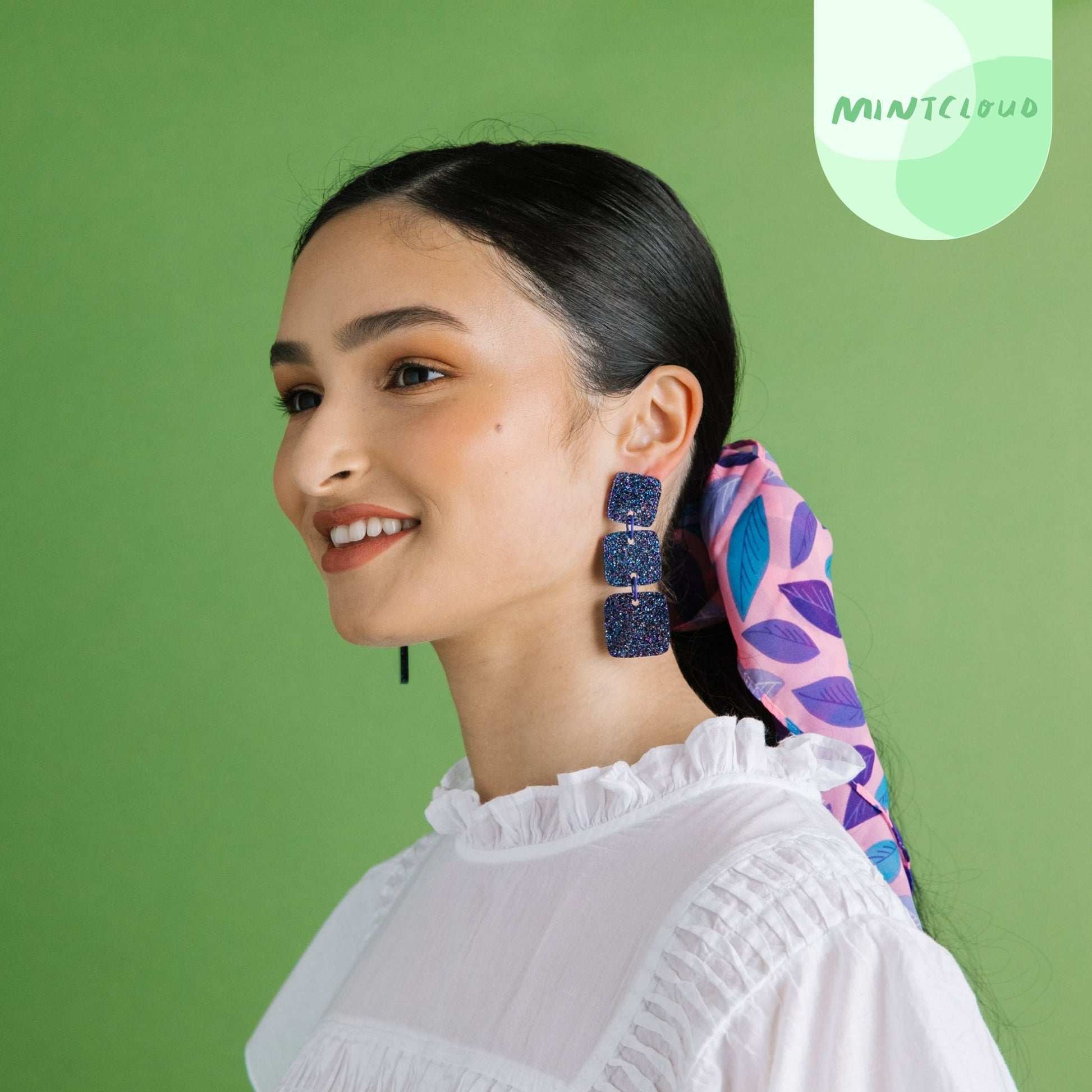 Eye-catching and unique, the Square Triplets Dangles are perfect for adding a bit of sparkle to any outfit. Crafted from acrylic and adorned with glitter, these earrings feature three glittery squares forming a stunning dangle. With various colours to choose from, you can easily find the perfect pair!