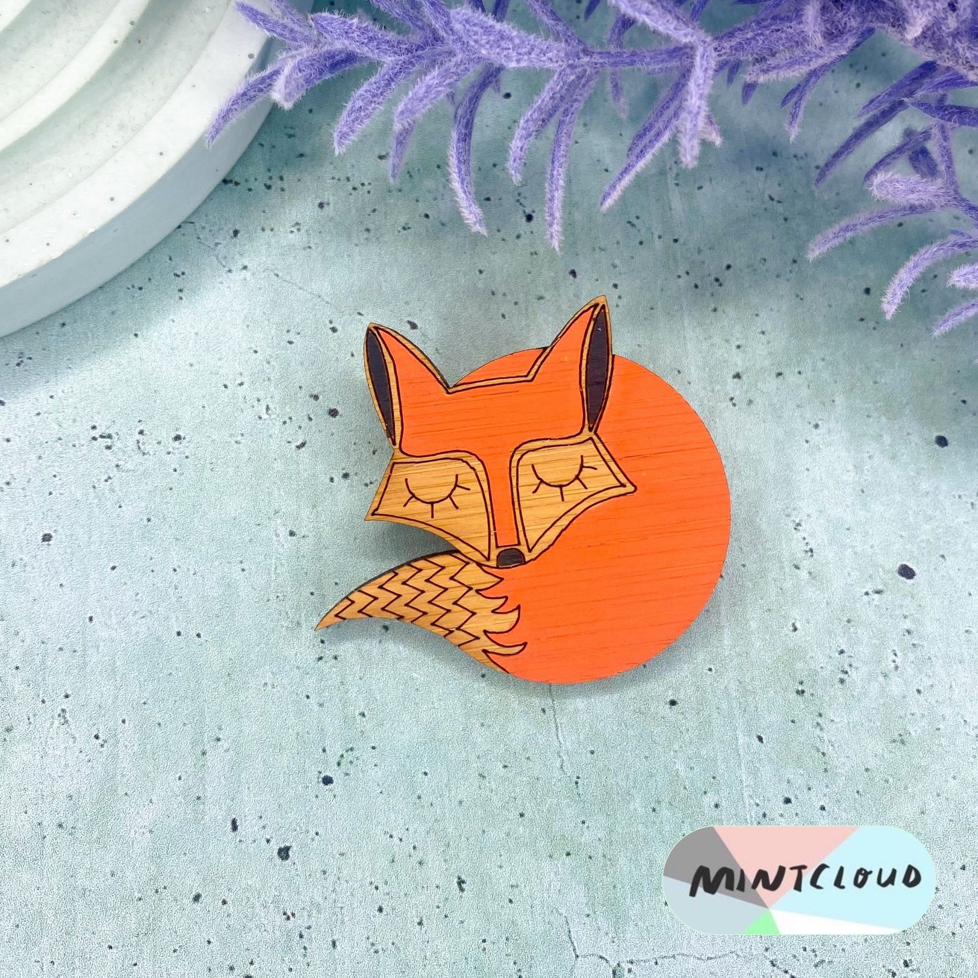 Show off your wild side with this adorable Sleeping Fox Brooch, hand-painted with striking orange highlights. Express your playfulness with a one-of-a-kind accessory.